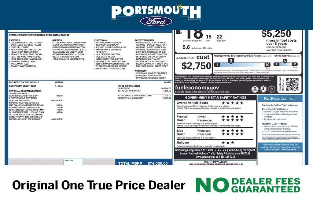 WHY BUY FROM PORTSMOUTH FORD -NO DEALER FEES GUARANTEED -ORIGINAL ONE PRICE DEALER FOR 30 YEARS -PORTSMOUTH FORD ADVANTAGE PROGRAM FREE 1 YEAR -LARGEST INVENTORY IN NEW ENGLAND.