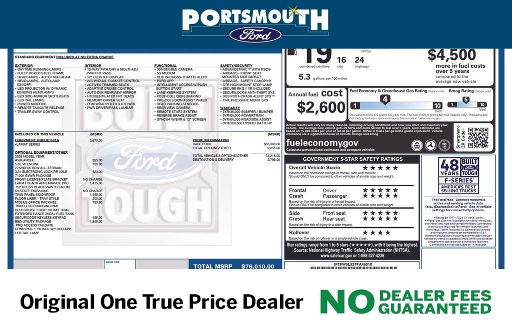 WHY BUY FROM PORTSMOUTH FORD -NO DEALER FEES GUARANTEED -ORIGINAL ONE PRICE DEALER FOR 30 YEARS -PORTSMOUTH FORD ADVANTAGE PROGRAM FREE 1 YEAR -LARGEST INVENTORY IN NEW ENGLAND. Price may include all applicable rebates, incentives, and special offers. See dealer for details.$2500 - Retail Customer Cash. Exp. 04/30/2026