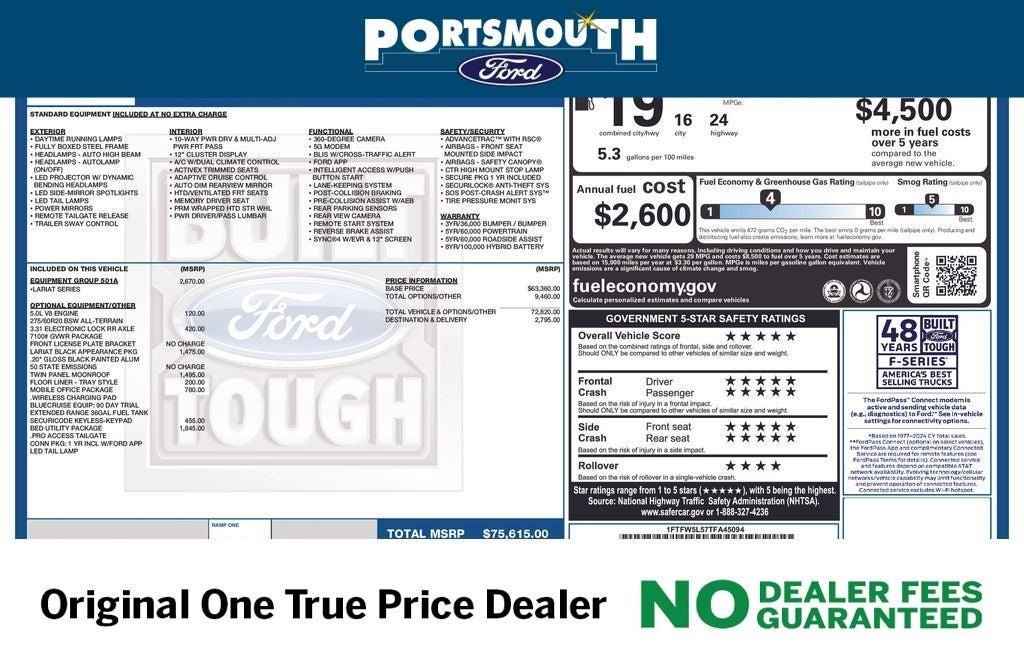WHY BUY FROM PORTSMOUTH FORD -NO DEALER FEES GUARANTEED -ORIGINAL ONE PRICE DEALER FOR 30 YEARS -PORTSMOUTH FORD ADVANTAGE PROGRAM FREE 1 YEAR -LARGEST INVENTORY IN NEW ENGLAND.