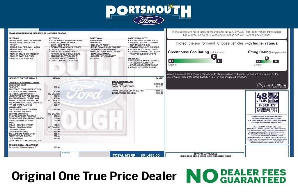 WHY BUY FROM PORTSMOUTH FORD -NO DEALER FEES GUARANTEED -ORIGINAL ONE PRICE DEALER FOR 30 YEARS -PORTSMOUTH FORD ADVANTAGE PROGRAM FREE 1 YEAR -LARGEST INVENTORY IN NEW ENGLAND. Price may include all applicable rebates, incentives, and special offers. See dealer for details.$3500 - Retail Customer Cash. Exp. 04/30/2026