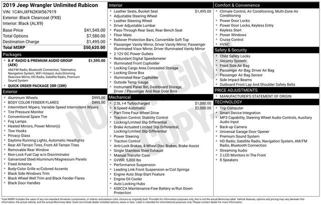 2019 Jeep Wrangler Unlimited Rubicon Clean CARFAX. 4WD Black Clearcoat 8-Speed Automatic 2.0L I4 DOHC
