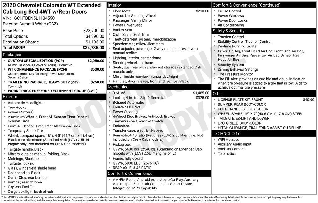 2020 Chevrolet Colorado Work Truck