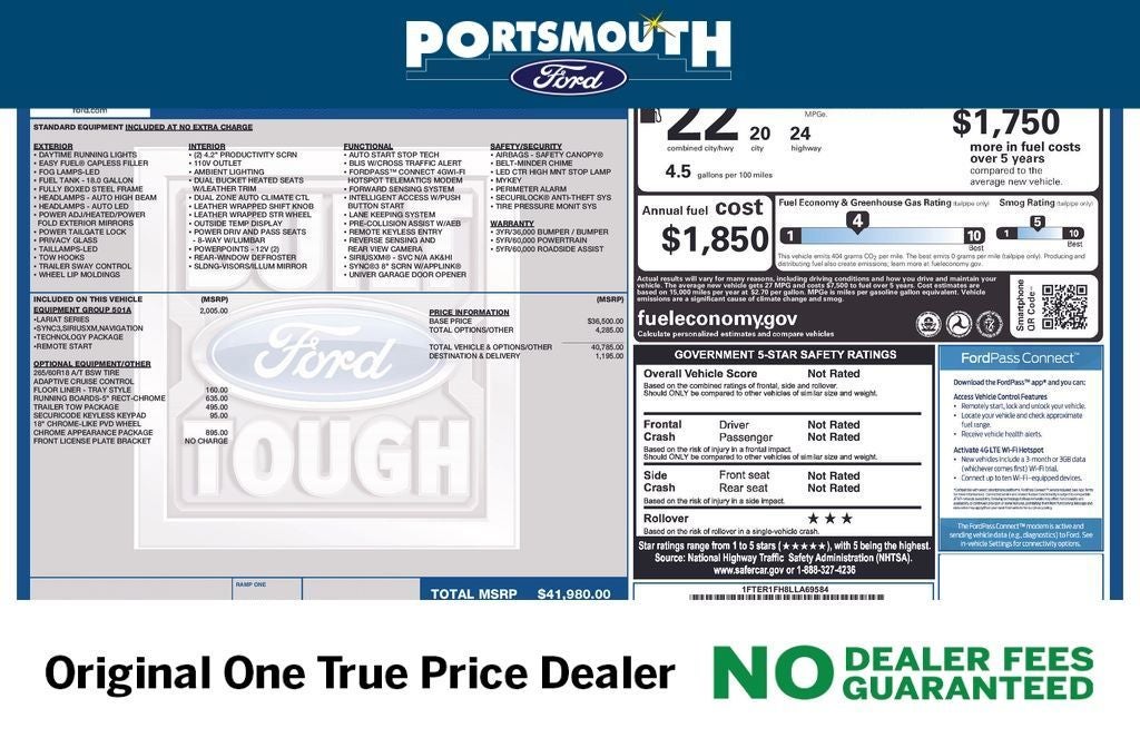 --PORTSMOUTH FORD ADVANTAGE BENEFITS --6 MONTH/7,500 MILE COMPREHENSIVE WARRANTY --WINDSHIELD REPAIR --COSMETIC WHEEL REPAIR --ROAD HAZARD PROTECTION --ROADSIDE ASSISTANCE --KEY REPLACEMENT --PAINT LESS DENT REPAIR --72 HOUR EXCHANGE POLICY (MAX 300 MILES ) PORTSMOUTH FORD HAS BEEN THE ORIGINAL ONE TRUE PRICE DEALER SINCE 1992, WHILE NEVER CHARGING ANY DEALER, DOCUMENTATION OR PREPARATION FEES GUARANTEED.