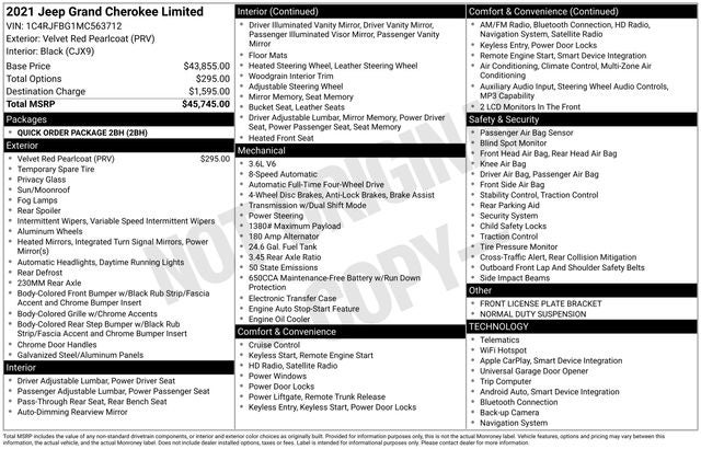 2021 Jeep Grand Cherokee Limited Clean CARFAX. 4WD Velvet Red Pearlcoat 8-Speed Automatic 3.6L V6 24V VVT