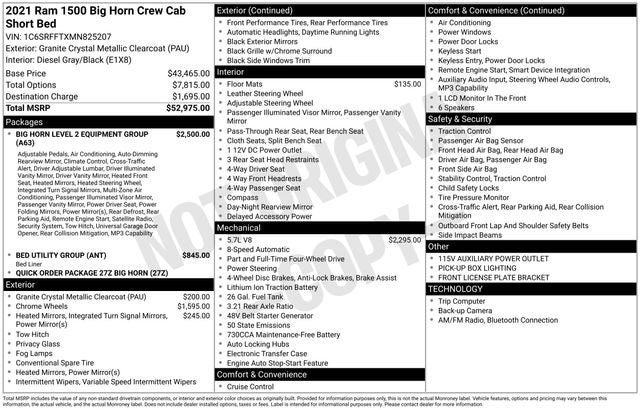 2021 Ram 1500 Big Horn/Lone Star Clean CARFAX. 4WD Granite Crystal Metallic Clearcoat 8-Speed Automatic HEMI 5.7L V8 Multi Displacement VVT